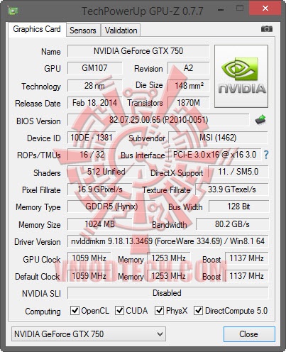 MSI GeForce GTX 750 OC Gaming from GPUZ