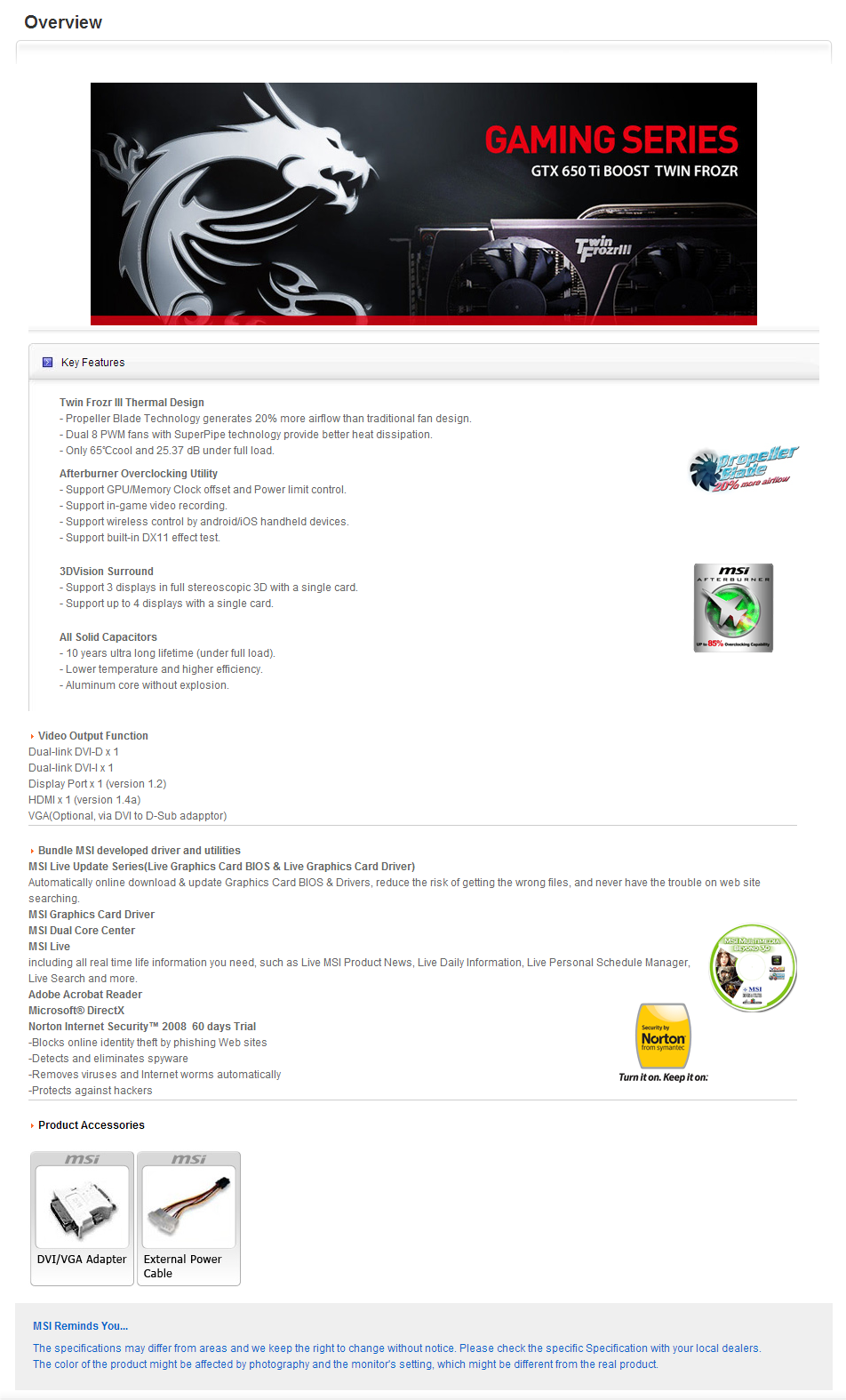 MSI Geforce GTX650Ti BOOST TWIN FROZR GAMING Review : Introduction & Specification (1/23)