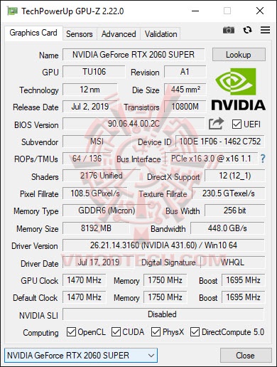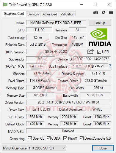 MSI GeForce RTX 2060 Super Gaming X from GPUZ
