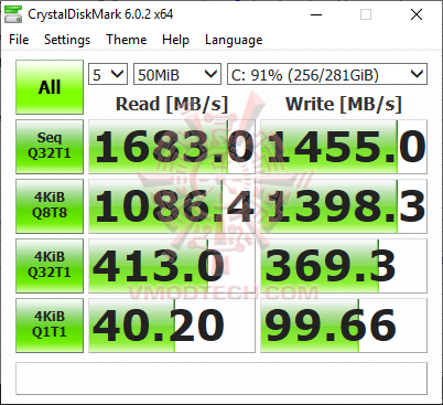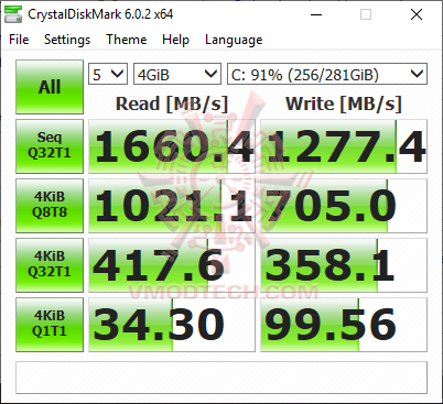 ความเร็วในการอ่าน/เขียน SSD นั้นอยู่ในเกณฑ์ที่ดีมากครับที่ประมาณ 1600 เมกกะไบท์ต่อวินาทีสำหรับการอ่าน และสามารถเขียนได้สูงถึง 1200-1400 เมกกะไบท์ต่อวินาทีเลย