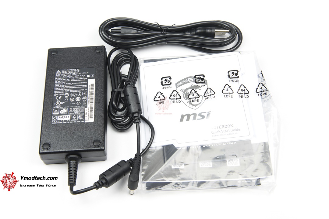 อุปกรณ์ที่แถมมากับกล่องก็จะมีเพียง Adapter แปลงไฟจากไฟบ้านเป็นดีซีเพื่อป้อนให้กับโน๊ตบุ๊คกับคู่มือแผ่นพับเท่านั้น พอแล้ว
