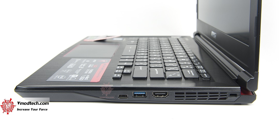 ด้านขวาจะมีช่องเสียบ USB 3.1 type-c หนึ่งช่อง ถัดมาจะเป็น USB 3.0 ช่องต่อเอาท์พุทแบบ HDMI