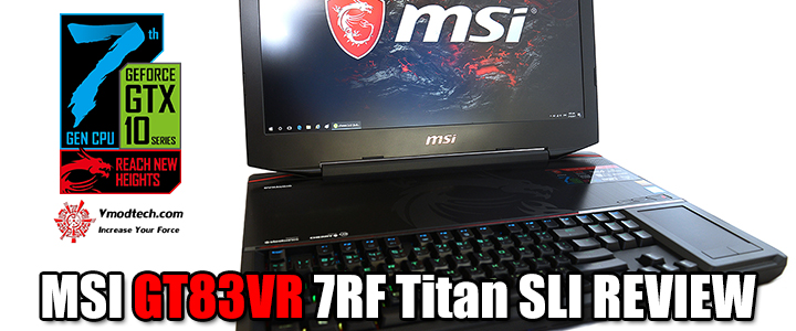 สวัสดีทุกท่านที่เยี่ยมชมเว็บไซต์ Vmodtech.com วันนี้ผมมีรีวิวโน๊ตบุ๊ครุ่นใหม่ล่าสุดที่ถือเป็นรุ่นใหญ่สุดของทาง MSI ในชื่อรุ่น MSI GT83VR 7RF Titan SLI ที่เปิดตัวในงาน CES2017 โดยผมได้เคยนำเสนอข่าวที่บูธของทาง MSI ไปแล้วกับงาน MSI BEST MEET BEST REACH NEW HIGHTS ในช่วงเดือนมกราคมที่ผ่านมา โดยได้ภายในงานได้นำเสนอซีพียูรุ่นใหม่อย่าง Intel GEN 7th มาเป็นตัวชูโรงในรหัสชื่อรุ่นว่า Intel Core i7 7820HK รวมไปถึงการเปิดตัวกราฟฟิการ์ดของทาง MSI ในซีรี่ย์10 ในรุ่น Nvidia GTX 1050 และ GTX 1050Ti โดยในวันนี้ผมจะได้ทดสอบเจ้า MSI GT83VR 7RF Titan SLI แบบเป็นๆหลังจากที่ได้ไปชมมาแล้วในวันเปิดตัวที่งาน CES2017 ที่บูธของทาง MSI โดยในรุ่นนี้พร้อมด้วยซีพียูรุ่นใหม่ล่าสุดกับ Intel Gen 7th ในรุ่น Intel Core i7 7820HK ตัวแรงใหม่ล่าสุด พร้อมด้วยความแรงมาพร้อมกับกราฟฟิการ์ดรุ่นใหม่ล่าสุดกับการ์ดจอ GTX 10ซีรี่ย์ กับ GeForce GTX 1080GB SLI 8GB GDDR5X ตัวแรง 2ชุดทำการ SLI กัน ถือเป็นอะไรที่ Extreme กันสุดๆเลยทีเดียวครับ ในส่วนของดีไซน์นั้นเป็นการออกแบบในแนว Titan ซีรี่ย์ที่เน้นความใหญ่อลังการเพราะไส้ในนั้นแรงสุดๆนั่นเอง ด้วยหน้าจอ 18.4" Full HD (1920x1080) หน้าจอแบบ IPS อีกทั้งจัดเต็มด้วยฟีเจอร์ไม่ว่าจะเป็น Cooler Boost Titan Technology , Cherry MX RGB Speed Silver , Thunderbolt 3 , USB Type-C reversible plug , Nahimic 2 , True Color Technology , SteelSeries Engine 3 , Killer DoubleShot Pro , และอื่นๆอีกมากมายครับ ในส่วนของระบบระบายความร้อนก็จัดเต็มด้วยระบบ Cooler Boost Titan Technology ที่ถือว่าเป็นฟีเจอร์ที่สำคัญของทาง MSI ด้วยความเย็นที่ถูกออกแบบใหม่มาอย่างเหนือระดับ ด้วยชุดระบายความร้อนที่มาพร้อมชุดใบพัดลม 3ชุดใหม่ล่าสุด Whirlwind Blade ที่แรงขึ้นระบายความร้อนได้ดีมากขึ้นแต่เสียงรบกวนลดลงพร้อมกับฮีตไปป์ในการดึงความร้อนถึง 15 Heat Pipes กันเลยทีเดียว อีกหนึ่งฟีเจอร์ที่เพิ่มเข้ามาก็คือระบบเสียงใหม่ Hi-Res Audio ที่ปรับย่านความถี่ที่สูงขึ้นให้เสียงที่คมชัดแม้ใช้กับลำโพงธรรมดาๆ โดยท่านจะเห็นถึงความแตกต่างเลยครับ อันนี้ยอดเยี่ยมมากๆ และระบบ NAHIMIC2 ที่อัพเกรดประสิทธิภาพขึ้นจากเดิมเพื่อตอบสนองคอเกมส์มิ่งอย่างแท้จริงพร้อมรองรับระบบ VR แบบ 7.1CH สำหรับท่านที่ใช้ VR จะได้สัมผัสระบบเสียงที่สมจริงมากยิ่งขึ้นอีกด้วย ในส่วนของฟีเจอร์ที่มาใหม่อีกอันก็คือคีย์บอร์ด RGB รุ่นใหม่ที่อยู่ในโน๊ตบุ๊ครุ่น MSI GT83VR 73RF Titan SLI เท่านั้นกับ CERRY MX RGB รุ่นแรกของโลกที่เป็น Speed Silver เน้นความรวดเร็วในการกดการตอบสนองที่ดีเยี่ยมมากๆเพื่อคอเกมส์เมอร์โดยเฉพาะ ถือเป็นสุดยอดคีย์บอร์ด Mechanical จาก Cherry MX RGB ที่เน้นสปีดและช่วงกดที่นิดเดียวทำให้ตอบสนองได้ดีมากกับบรรดาเกมส์เมอร์มาแบบครบสีสรร RGB แบบจัดเต็มครับ นี่คือรายละเอียดของ MSI GT83VR 7RF Titan SLI ตัวแรงที่สุดในโลกของทาง MSI รุ่นใหม่ล่าสุด เดี๋ยวเราไปดูรายละเอียดบท