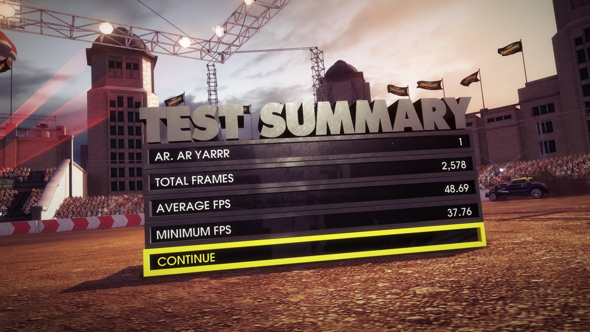สำหรับเกมส์แข่งรถอย่าง Dirt Showdown ก็แรงครับแบบเปิดสุดหมดทุกอย่าง โดยเฟรมเรตอยู่ที่ 48.69เฟรมเรตเลยทีเดียว