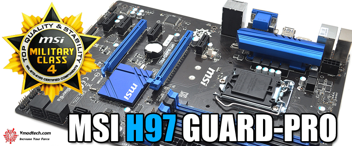 สวัสดีครับ ทุกๆท่านที่เยี่ยมชมเว็บไซต์ Vmodtech.com ในวันนี้เรามาชมรีวิวเมนบอร์ดใหม่ล่าสุดของของทาง INTEL กันครับ ในวันนี้เป็นเมนบอร์ดชิบเซ็ต H97 ครับ ซึ่งในวันนี้มากันในยี่ห้อ MSI ในชื่อรุ่น MSI H97 GUARD-PRO ที่เป็นเมนบอร์ดในซีรี่ย์ Classic Series ของทาง MSI ที่เรารู้จักกันดีถึงฟีเจอร์เด่นๆอย่าง MSI Military Class 4 นั่นเองครับ สำหรับในรุ่นนี้เป็นรุ่น Guard-Pro ซึ่งในคราวที่แล้วที่ผมได้รีวิวไปจะเป็นชิบเซ็ต Z97 นั่นเองครับโดยฟีเจอร์ต่างๆนั้นแทบไม่แตกต่างกันเลยครับจะต่างกันที่ชิบเซ็ตเท่านั้นรวมไปรูปร่างหน้าตาก็ยังเหมือนกันอีกด้วย ซึ่งฟีเจอร์หลักๆก็ยังเป็นเป็น Guard-Pro ระบบป้องกันความปลอดภัยจากการใช้งานให้กับตัวเมนบอร์ดครับโดยมีหลาย ระบบอาทิ Circuit Protection , Humidity Protection , High Temperature Protection , ESD Protection , EMI Protection , ECO Power ครับ โดยถ้าพูดง่ายๆคือมีระบบป้องกันไฟกระชากไฟตกที่คอยทำอันตรายให้กับตัวเมนบอร์ด นั่นเองครับโดยเป็นที่มาของชื่อรุ่นที่เรียกว่า Guard-Pro นั่นเองครับ เดี๋ยวเรามาชมกันครับว่าประสิทธิภาพต่างๆของเมนบอร์ดนั้นเป็นเช่นไร ก่อนอื่นเราไปชมรายละเอียดจากทางเว็บไซต์กันก่อนครับ