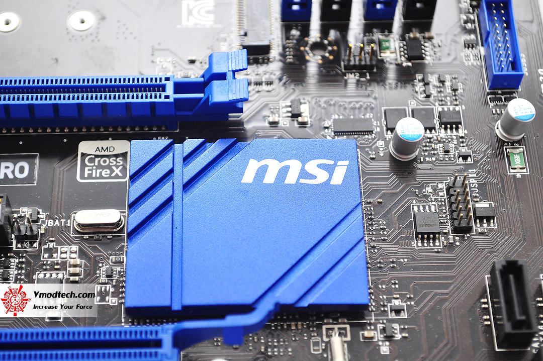 ตัวเมนบอร์ดสีดำสลับซิงค์น้ำเงินครับดุสวยงามจริงๆตามแบบฉบับซีรี่ย์ Classic Series ของทาง MSI H97 GUARD-PRO