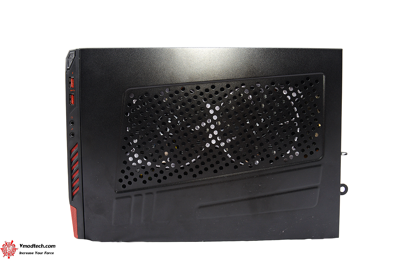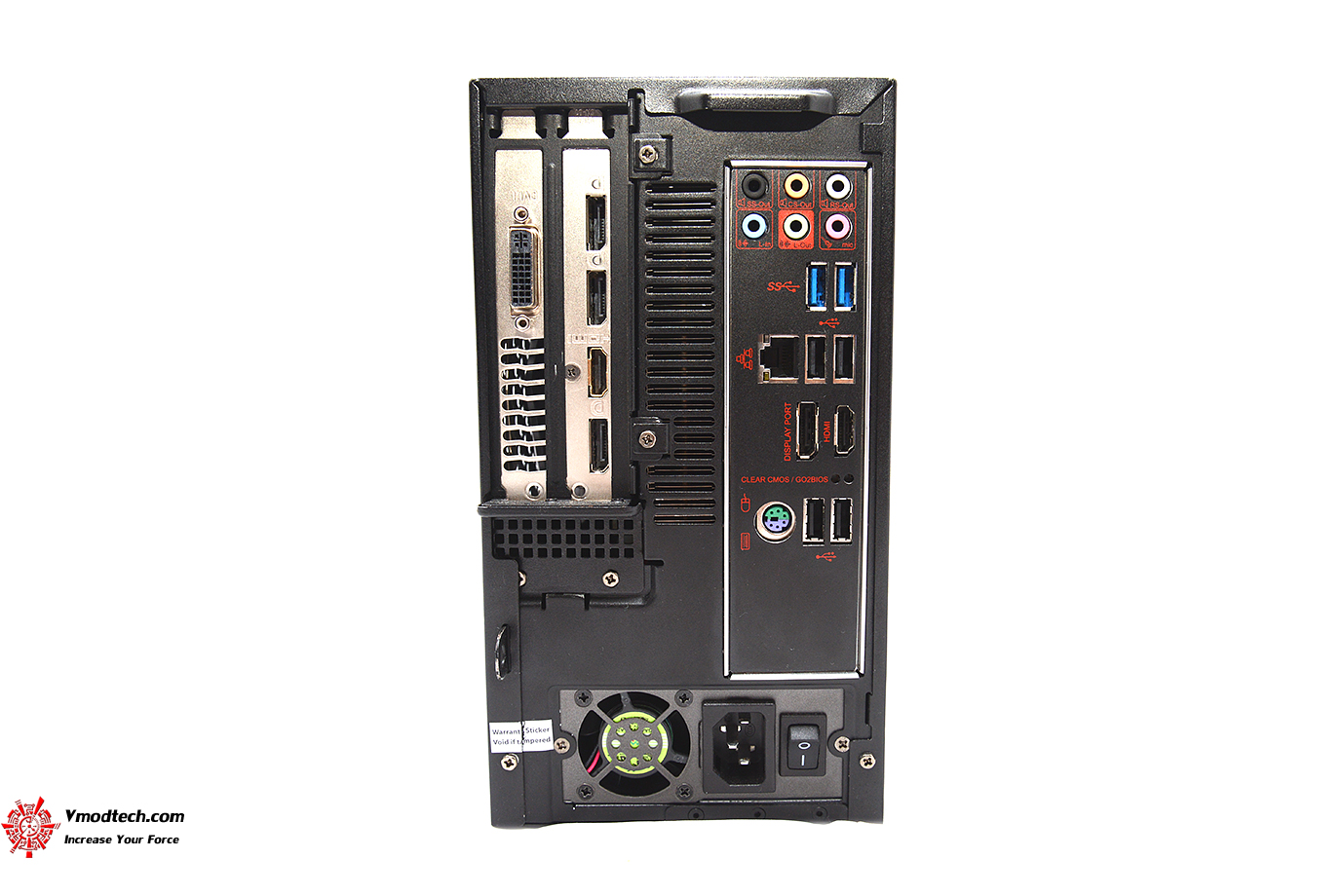 ด้านหน้าจะมีโลโก้ MSI พร้อมด้วยช่อง Slim Type Super Multi ไว้สำหรับอ่านแผ่นต่างๆ ขนาดของตัวเครื่องมีขนาด 127.6 x 234.8 x 340.6 mm น้ำหนัก 8กิโลกรัมครับด้านข้างก็จะเป้นช่องระบายความร้อนของการ์ดจอและช่องเชื่อมต่อต่างๆ 2 x USB 3.0 , 1 x Mic-in , 1 x Audio jack และปุ่ม Power ครับ ในส่วนของ PSU นั้นใช้ขนาด 350W 80 PLUS Bronze