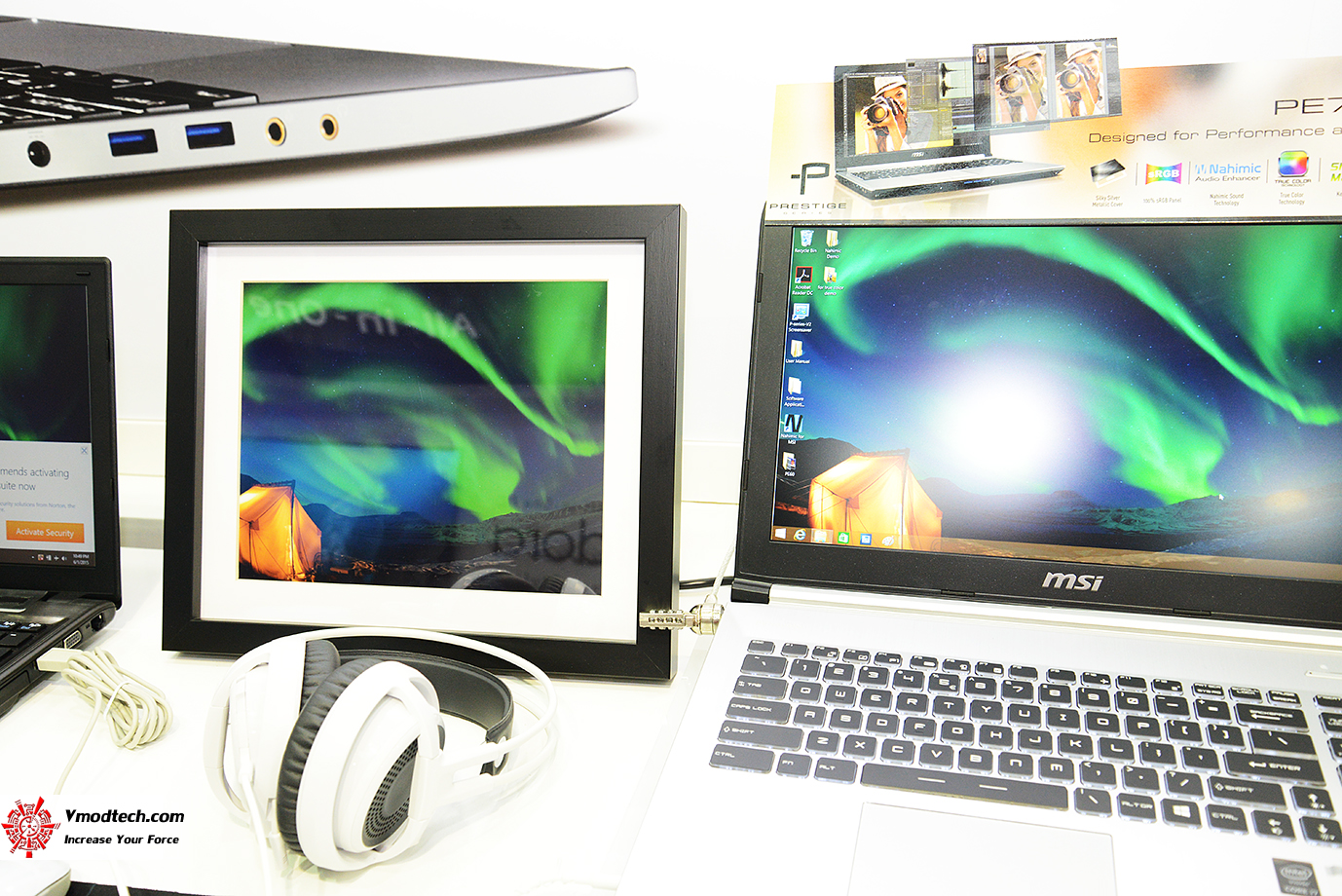 MSI PRESTIGE SERIES PE70 / PE60 ครับ รูปทรงก็คล้ายๆกัน ท่านจะเห็นได้นะครับว่าด้านข้างจะมีรูปของจริงอยู่เป็นรูปภาพจริงๆและในจอของ MSI PRESTIGE SERIES PE70 / PE60 เทียบเคียงสีให้ท่านได้ชมกันไปเลยครับว่าระดับสีต่างๆไม่แตกต่างจากต้นฉบับเลยครับ นี่คือสุดยอดเทคโนโลยีจาก MSI True Colour Technology