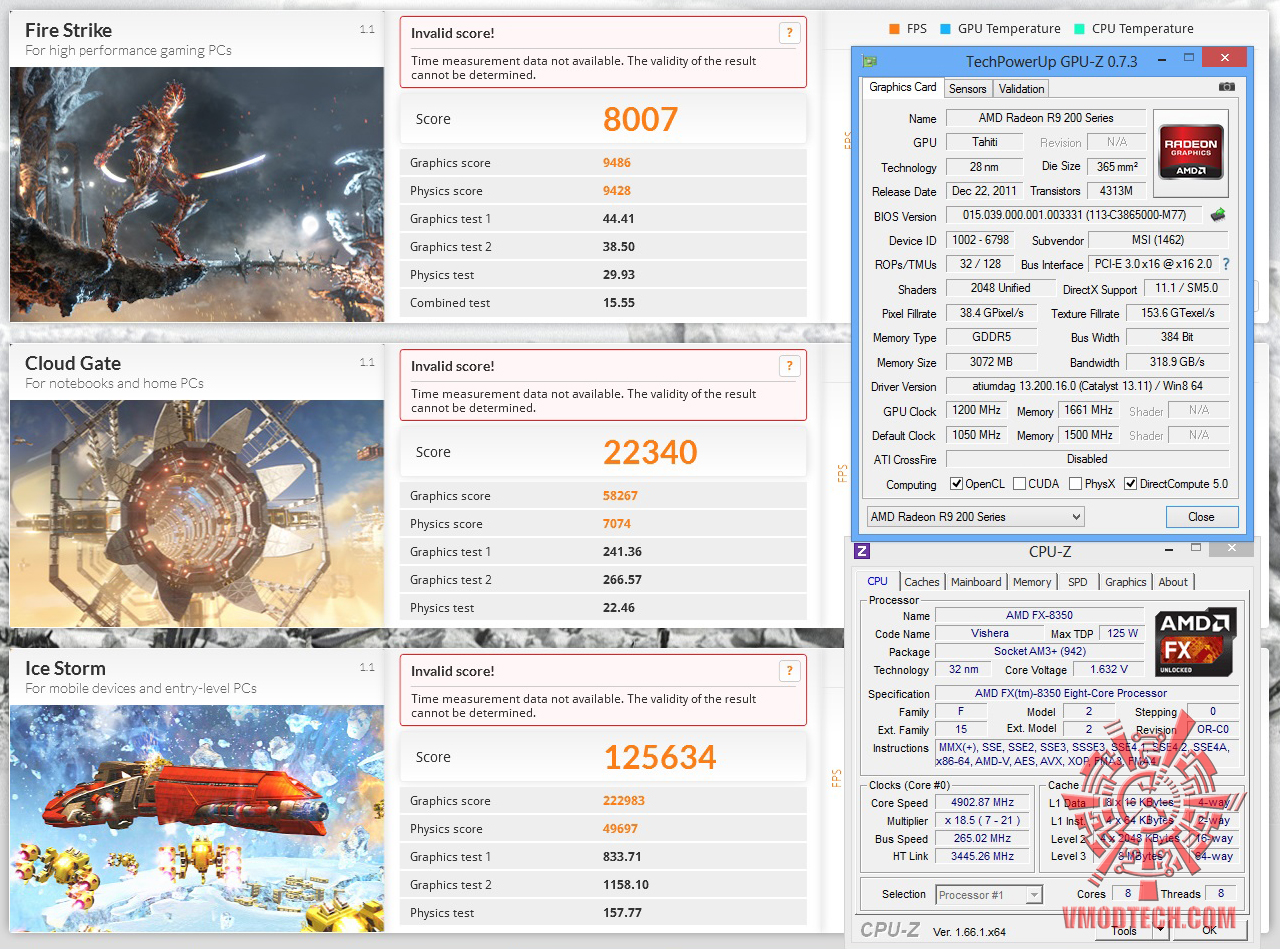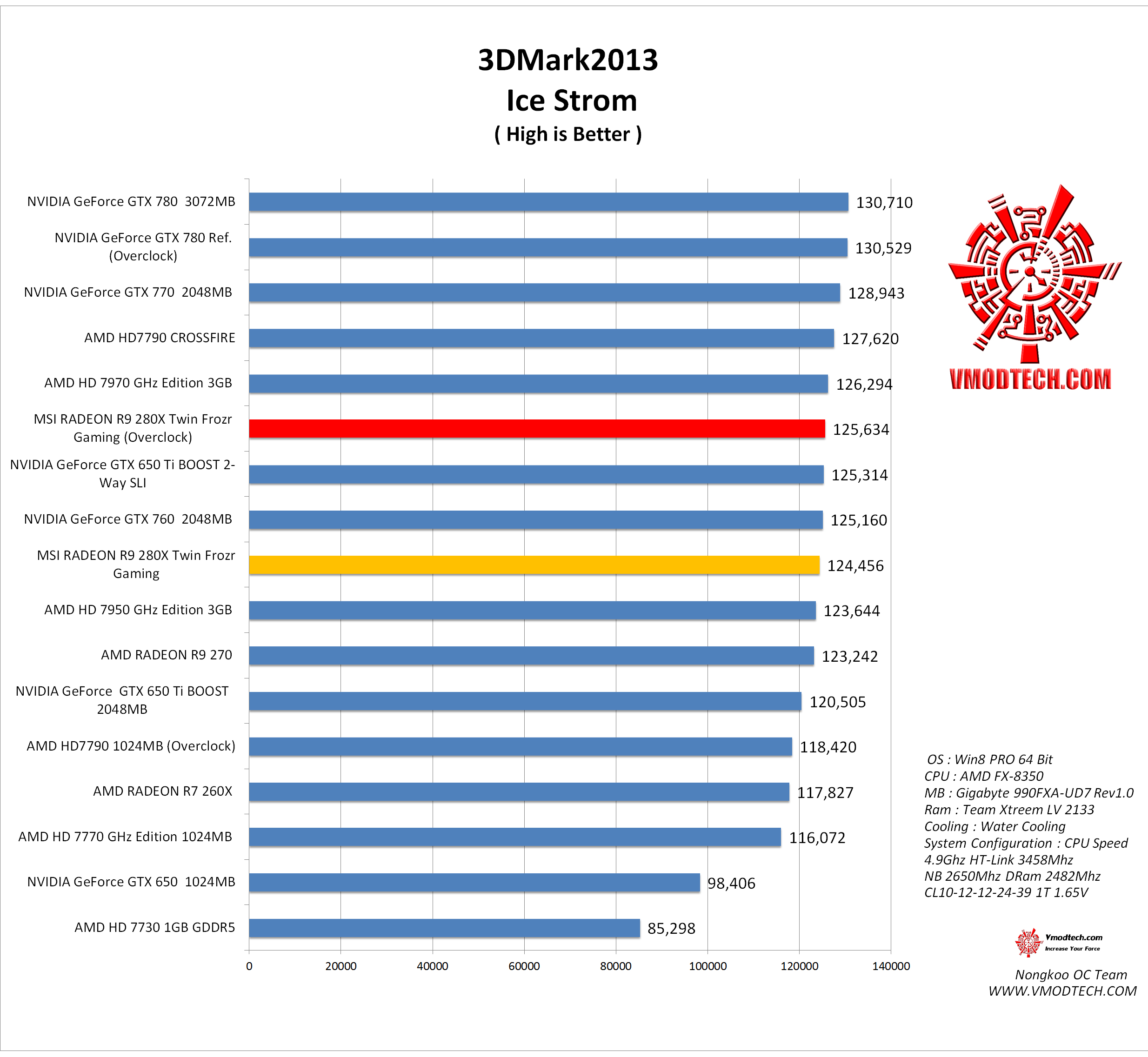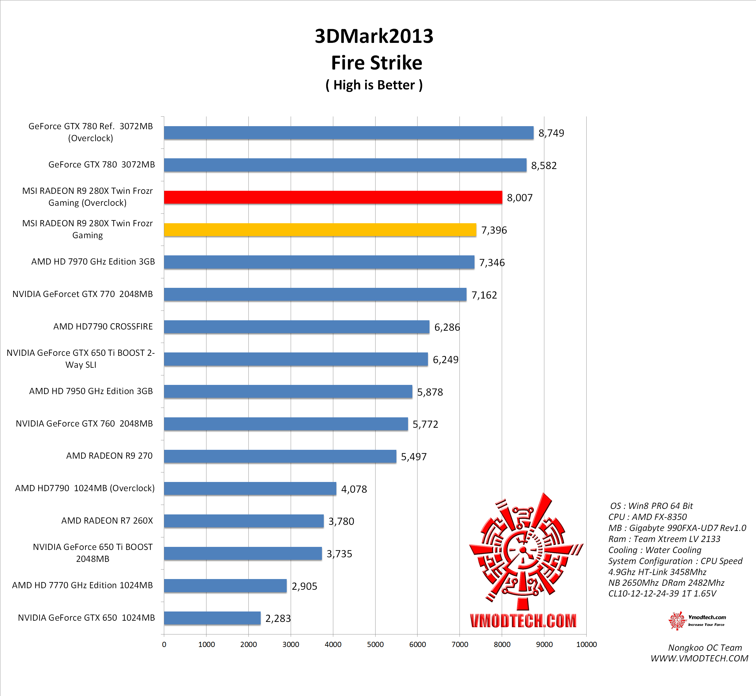 สำหรับชุดทดสอบ 3DMark 2013 ชุดทดสอบ Fire Strike คะแนนออกมา 8007คะแนน กดกันทะลุแปดพันไปแล้วครับ เกินการรับประกันว่าคะแนน FireStrike อยู่ที่6800คะแนนกันไปแล้ว แรงจัดจริงๆ