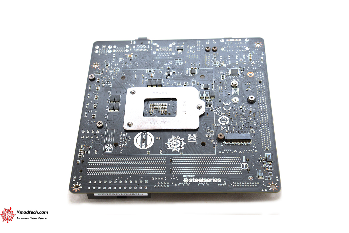 PCB ด้านหลังสีดำสนิทครับ โดยจะมีช่องเชื่อมต่อ Turbo M.2 32Gb/s: Supports 2 sizes of M.2 SSDs อยู่ที่ด้านหลังเมนบอร์ดครับ
