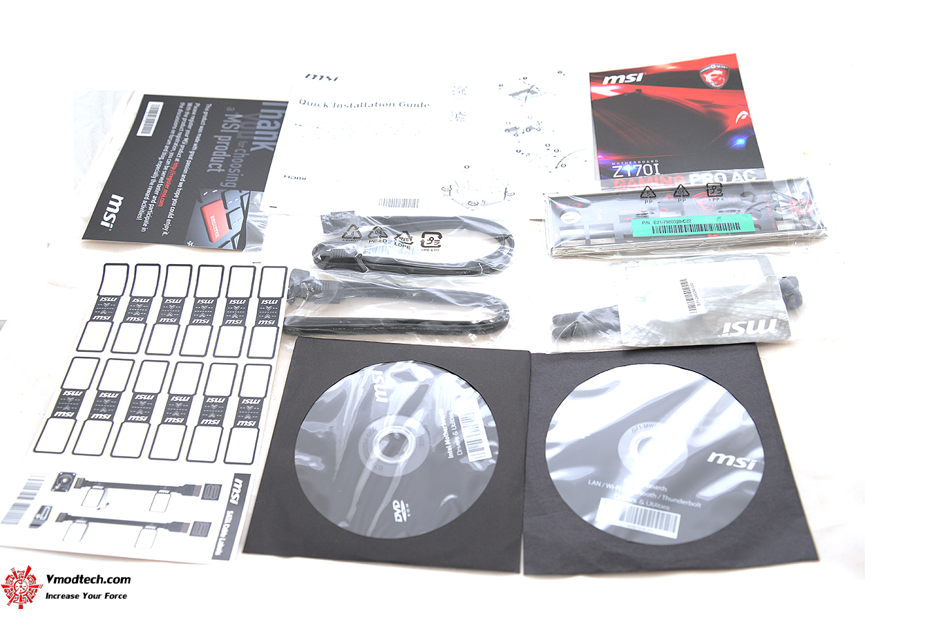 อุปกรณ์ที่ให้มาประกอบด้วย แผ่นไดร์เวอร์ คู่มือ ฝาหลัง สาย SATA 2ชุด เสา WIFI 2ชุดครับ