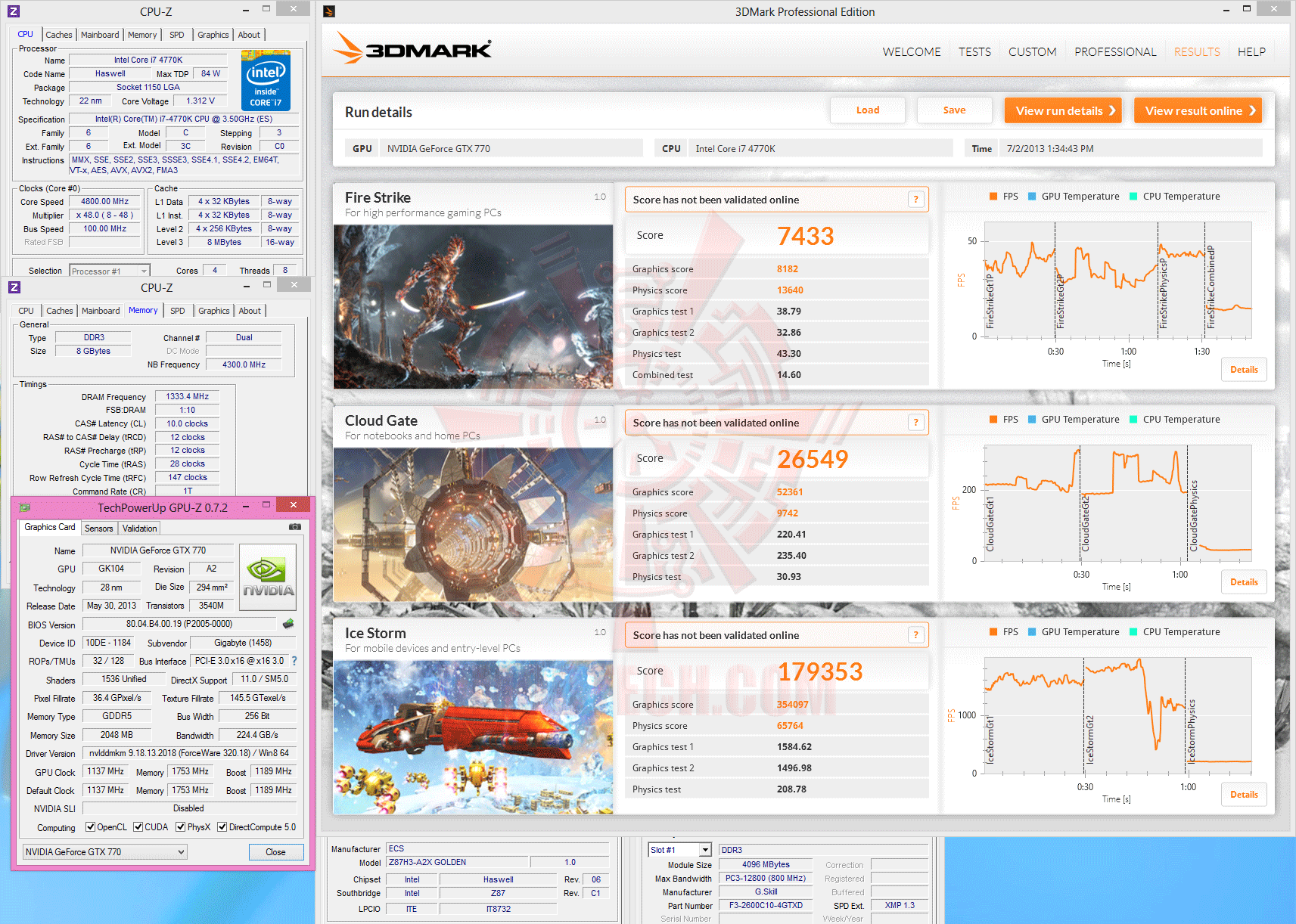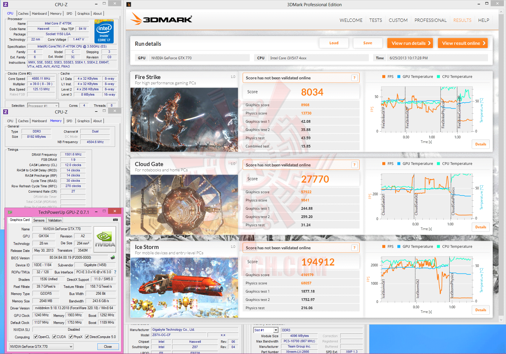 ผลการทดสอบของตระกูล 3DMark ก็แรงกันไปกับพลังของ GIGABYTE WINFORCE GTX 770 2GB GDDR5