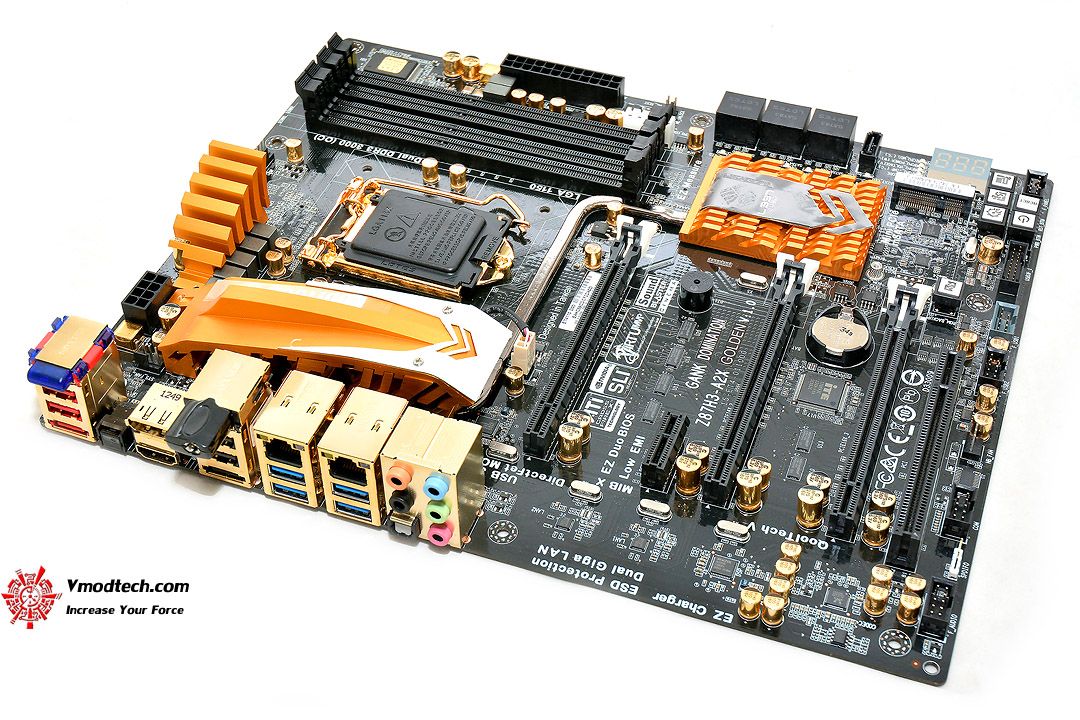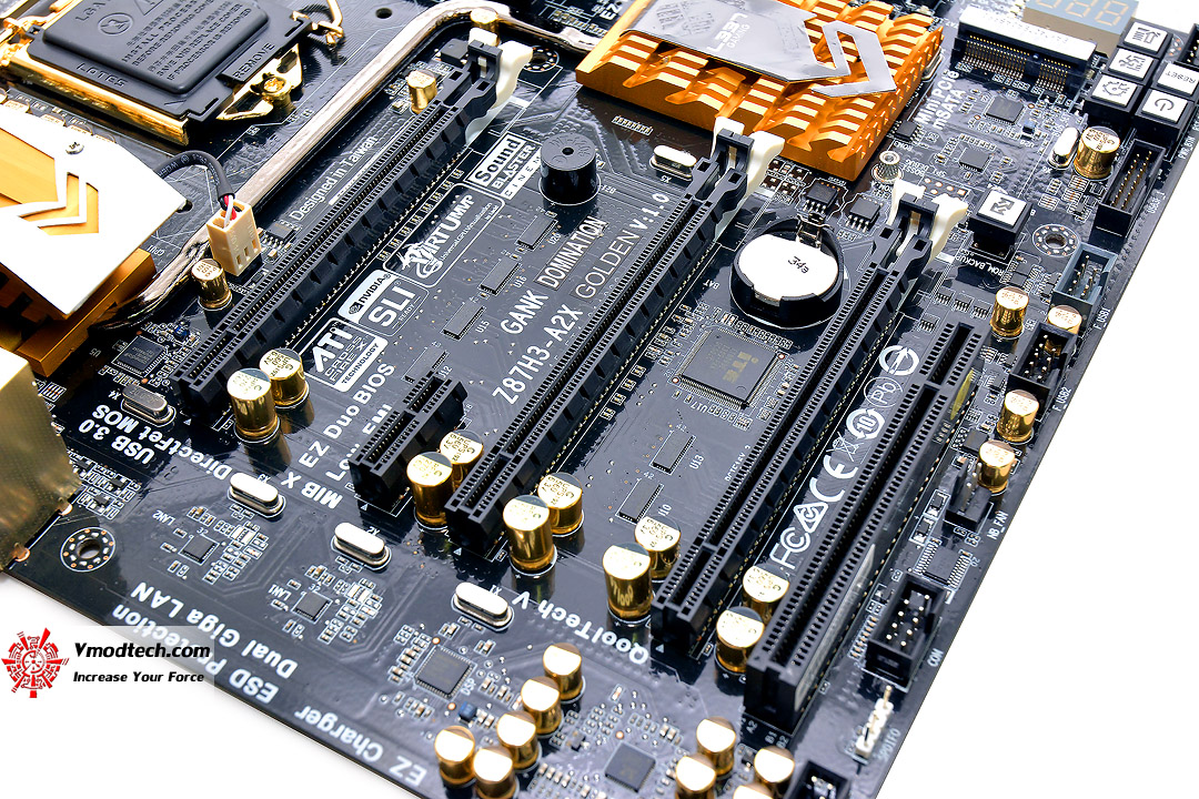 ...PCI-E 3.0/2.0 X16 Slot ที่มาพร้อมกันถึง 3 ช่องทาง ที่สนับสนุนการทำงานทั้งในรูปแบบ SLI 2 Ways และ CrossFireX 3 Ways ตามด้วย PCI-E 2.0 X1 Slot อีก 4 ช่องทางครับ