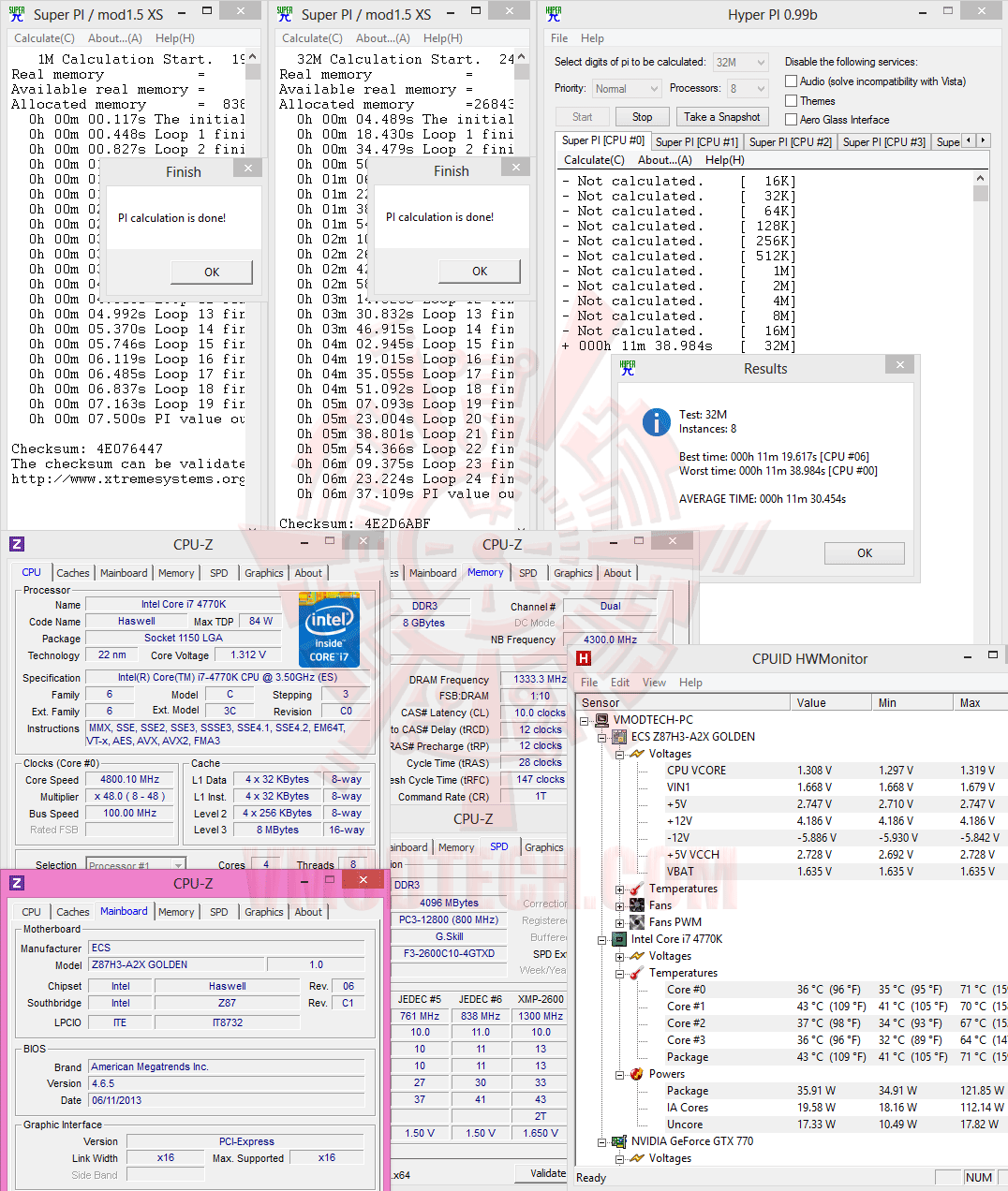 SuperPI 1M 1Thread, 32M 1Thread & 32M 8Threads