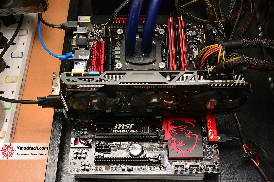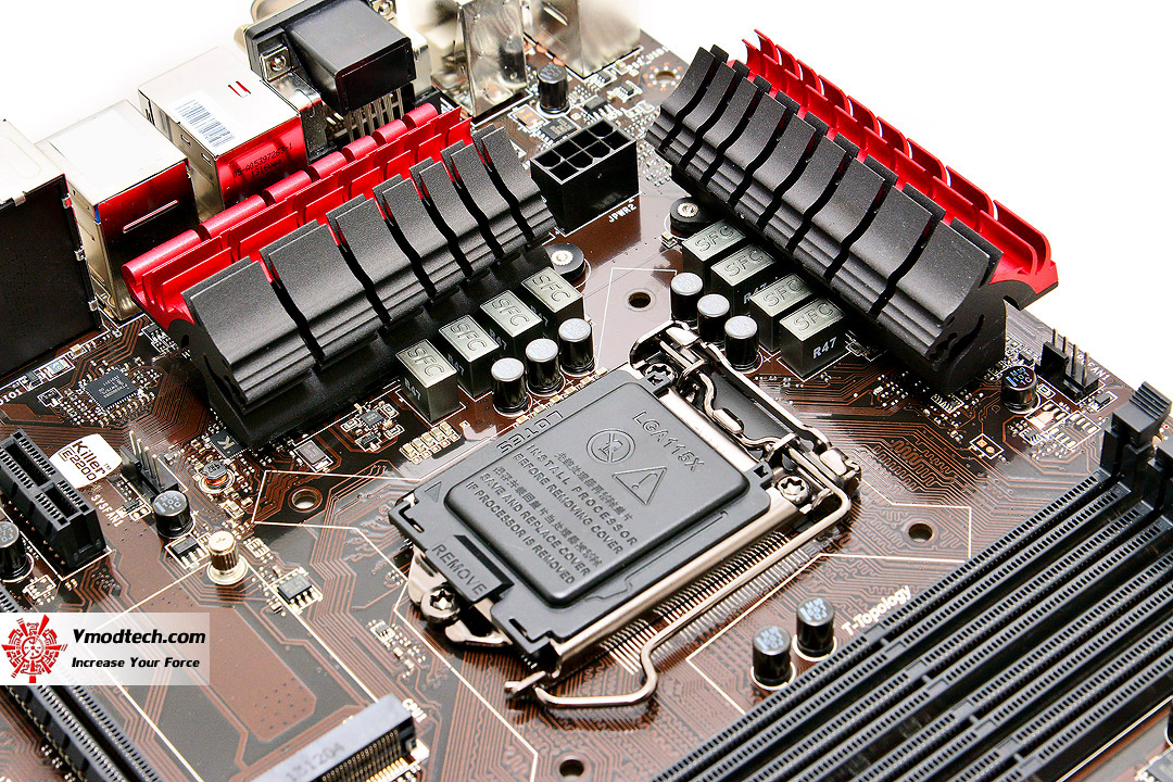 หน้าตาชุดระบายความร้อนให้กับตัวชิปเซต Z87 ที่สวยงามมังกรแดงกลมกลืนกันกับตัวมาเธอร์บอร์ดเป็นอย่างดีครับ