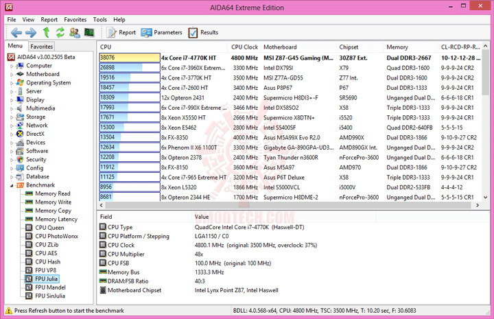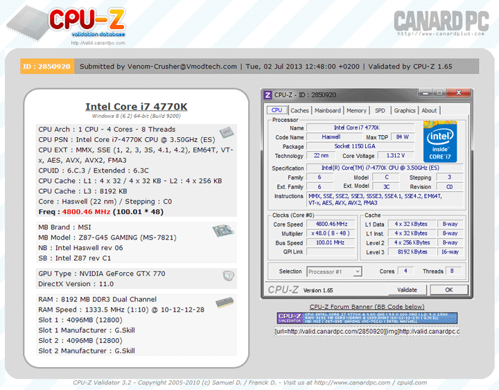 4th Generation Intel® Core™ i7-4770K @ 4.800 GHz Bclk 100MHz