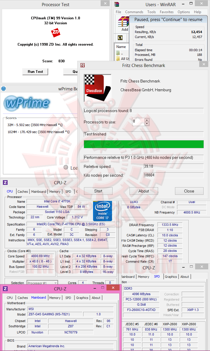 WinRAR5.00 beta6 ,wPrime2.09 , CPUMark99 & Fritz Chess Benchmark