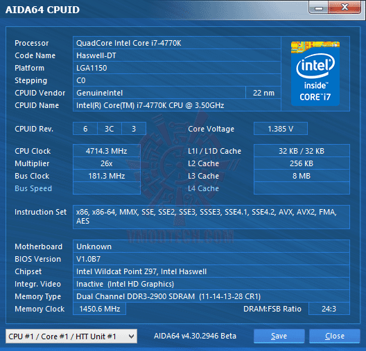 4th Generation Intel® Core™ i7-4770K @ 4,714MHz Bclk 181.3MHz