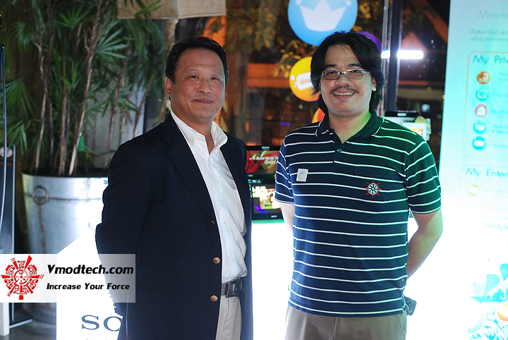 ...ทั้งนี้ภายในงานก็ยังได้รับเกียรติจากทาง มร. โทรุ ชิมิซึ (Mr. Toru Shimizu) กรรมการผู้จัดการ บริษัท โซนี่ ไทย จำกัด เข้ามาร่วมงานปาร์ตี้กันอย่างสบายๆ ใกล้ชิดกับกลุ่มลูกค้าเป็นอย่างมากครับ ใกล้ชิดแค่ไหนไม่รู้ แต่ท่าน Venom-Crusher เราก็ได้มีโอกาสเข้าไปพบปะพูดคุยถ่ายรูปร่วมกัน ดังภาพที่เห็นด้านล่างนี้ด้วยแหละครับ