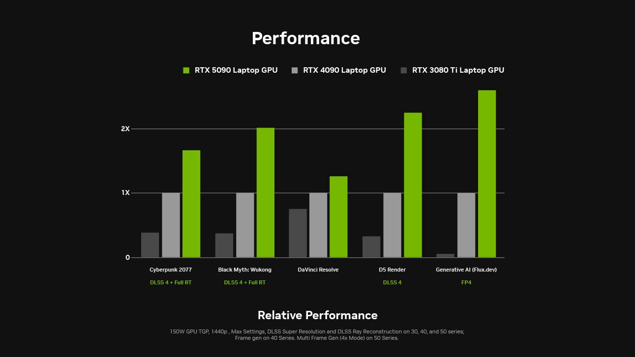 ประสิทธิภาพการ์ดจอ RTX 5090 Laptop ถือเป็นการ์ดจอแล้ปท็อปเกมมิ่งที่เป็นตัวท็อปทรงพลังที่สุดในโลก ณ ปัจจุบันครับ