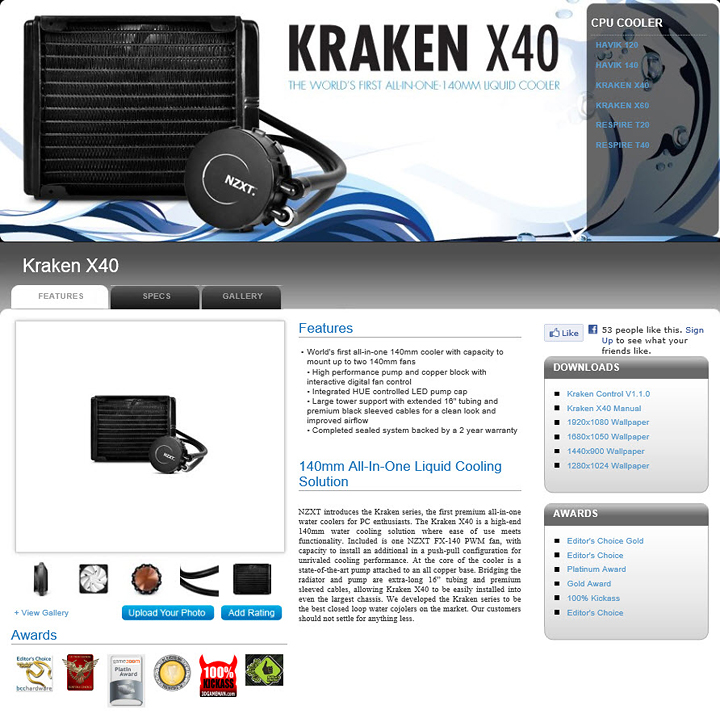 บนหน้าเว็บนั้นก็แสดงรายละเอียดของ NZXT KRAKEN X40 ไว้ได้ชัดเจนมากแล้วครับ หลักๆคือมันออกแบบมารองรับการใช้งานกับ CPU ทุก Socket ในเวลานี้เลยครับ