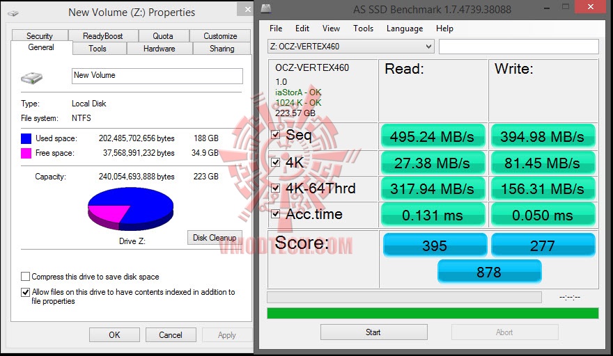 ประสิทธิภาพและสมรรถนะของ OCZ Vertex 460 240GB นั้นอยู่ในเกณฑ์ที่น่าสนใจครับกับความเร็วในการอ่าน/เขียนแถวๆห้าร้อยเมกกาไบท์ต่อวินาที และเมื่อลองใส่ข้อมูลไปประมาณ 87 เปอร์เซนต์ของความจุนั้น ความเร็วในการแทบไม่ตกเลยแต่ว่าความเร็วในการเขียนนั้นจะดร๊อบลงเล็กน้อยประมาณร้อยเมกกาไบท์ต่อวินาที แต่ตรงนี้ถือว่าไม่มากนักครับ ลองพิจารณาดูครับว่ามันเหมาะกับคุณหรือเปล่า