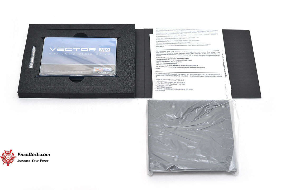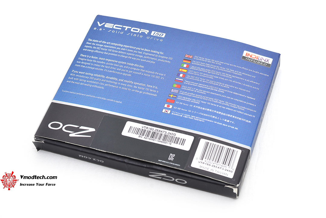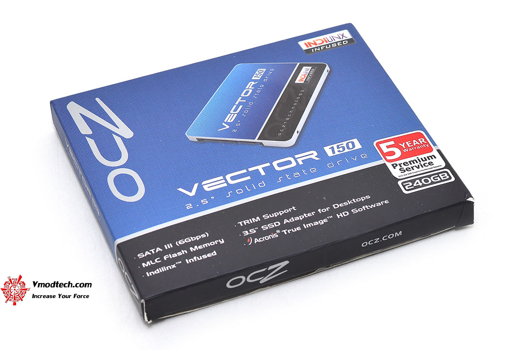กล่องบรรจุนั้นยังถูกออกแบบมาให้มีสีสรรมาตรฐานของ OCZ คือสีน้ำเงินคาดดำ