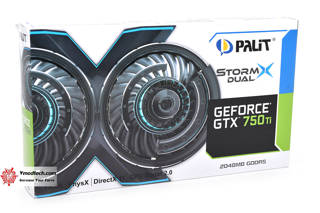 กล่องบรรจุ PALIT GeForce GTX 750 Ti Dual StormX ออกแบบมาให้มีสีสรรโทนขาว