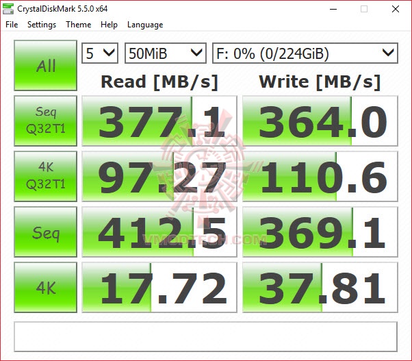 เมื่อทดสอบกับ ASSSD แล้วจะเห็นได้ชัดครับว่าความสามารถในการอ่านเขียนนั้นตรงตามที่ระบุไว้เลยคืออ่านเขียนได้ที่ประมาณ 400 เมกกะไบท์ต่อวินาที