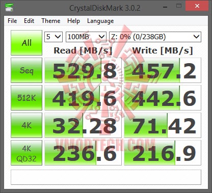 Read speed จะอยู่ที่ประมาณห้าร้อยกว่า MB/s และ Write speed ที่ร่วมๆ 460 MB/s ส่วน 4K นั้นก็ใช่ย่อยครับ เทสได้ที่ 32/71 บร๊ะเจ้า แรงโคตร