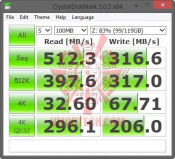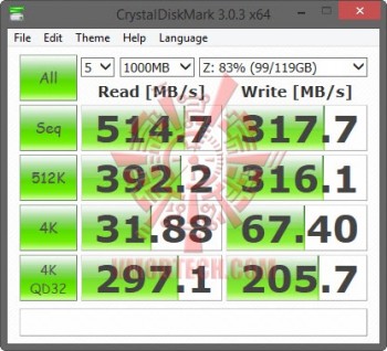 ผมลองใส่ข้อมูลเข้าไปใน PLEXTOR M6S 128GB ประมาณ 83% เทียบกับ SSD เปล่าดูครับ ความเร็วในการอ่าน/เขียนนั้นไม่ต่างไม่ว่าจะมองตรงจุดไหนของ Benchmark