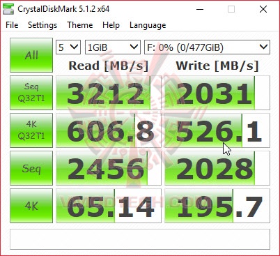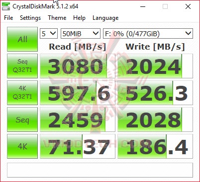 ด้านผลการทดสอบโดย AS SSD นั้นก็มีผลงานที่อยู่ในคลาสเดียวกันคือการอ่านนั้นอยู่แถวๆ 2700 เมกกะไบท์ต่อวินาที การเขียนนั้นก็ลดทอนลงมาประมาณ 1000 เมกกะไบท์ต่อวินาที