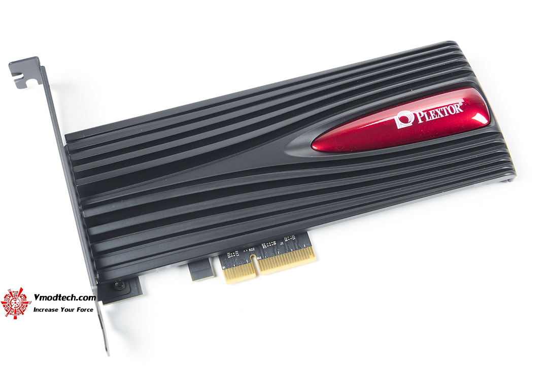 หน้าตาเต็มๆของ Plextor M9PeY 512GB ที่มีอินเตอร์เฟสแบบ PCIe 3.0 X4 มาตรฐาน NVMe 1.2 ตัวฮีทซิ้งค์นั้นมีขนาดใหญ่ที่จะช่วยระบายความร้อนได้ดีกว่าแบบอินเตอร์เฟส M.2
