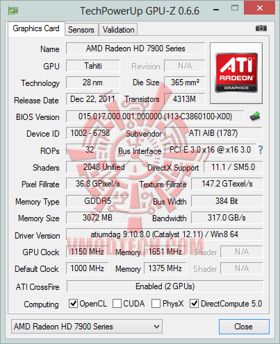 PowerColor DEVIL13 HD7990 6GB GDDR5 Overclock @ 1150/1651 Core/Mem from GPUZ