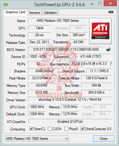 PowerColor DEVIL13 HD7990 6GB GDDR5 @ 1000/1375 Core/Mem from GPUZ