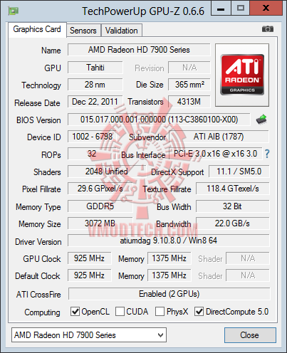 PowerColor DEVIL13 HD7990 6GB GDDR5 @ 925/1375 Core/Mem from GPUZ