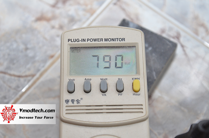 สำหรับ Full Load นั้น กำลังไฟที่กินจากเต้ารับก็ประมาณ 790 วัตต์ เง้อ กินไฟพอควรครับเพราะที่ idle นั้นก็หวดไปเกือบๆ 270 วัตต์แล้ว