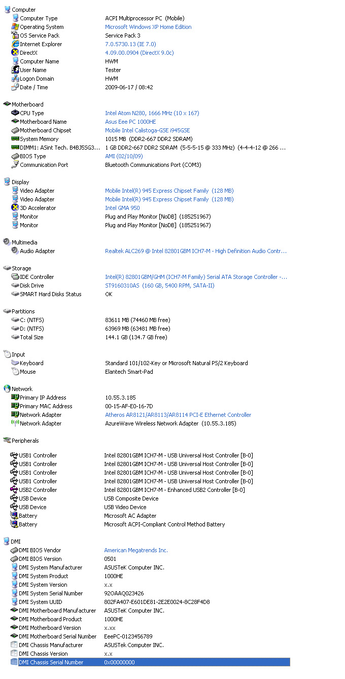 ผมมีความรู้สึกว่า Netbook จะยี่ห้ออะไรรุ่นอะไร เสป็คก็จะออกไปในแนวทางเดียวกันหมด ไม่เห็นมีรุ่นไหนมีแรมเกิน 1gb สักทีครับ จะพิเศษหน่อยก็ตรงที่ Eee 1000HE นั้นเป็นเน็ตบุกระดับบนๆ ก็จะมี Harddisk แบบจานหมุนขนาด 160gb ติดมาให้ รวมไปถึงแบตเตอร์รี่ขนาดใหญ่ถึง 8700 mAh
