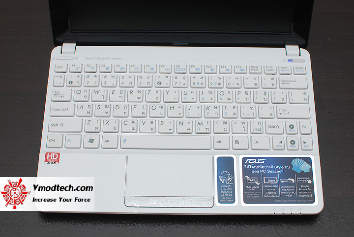 เปิดออกมาก็ยังจะพบกับสีขาวสะดุดตาพร้อมกับแป้นพิมพ์ปุ่มแบบชิคเคล็ต