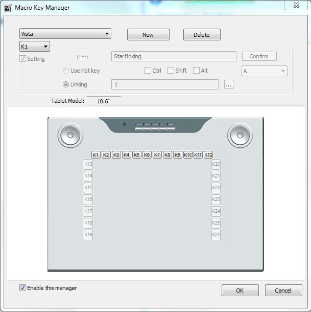 รอบๆบริเวณแผ่นกระดานก็จะมี Macro key ไว้ให้ใช้ปากกาจิ้มมากถึง 26 ปุ่มครับ โดยจะมีโปรแกรมจัดการ Macro key ดังภาพด้านล่าง