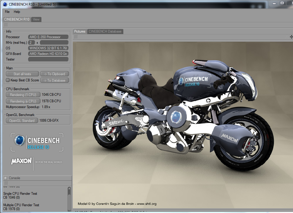 คะแนนของ Cinebench R10 นั้นออกมาชัดเจนเลยครับว่า "เร็วกว่า Atom แต่ช้ากว่า Pentium" เฉพาะแค่ในส่วนของประสิทธิภาพตัว CPU
