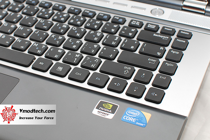 คีย์บอร์ดจะออกแนวนุ่มๆหยุ่นๆมือสไตล์ซัมซุง แต่ความสูงของปุ่มและจังหวะการกดก็ยังคงคล้ายๆโน๊ตบุ๊กทั่วไป การวางตำแหน่งทำได้ค่อนข้างดีแล้วครับ ปุ่มไม่มีการอัดกันในบริเวณใดบริเวณหนึ่งมากเกินไป