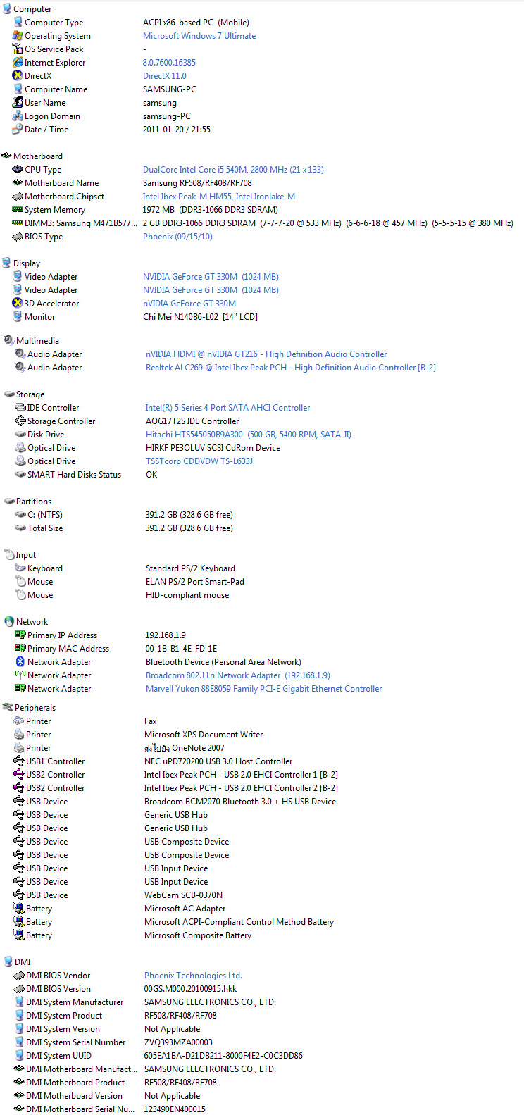 ...เสป็คถ้าจะให้พูดในภาษาของผมแบบไม่เกรงใจใครก็คือ "ตลาด" มากๆครับ ทำออกมาเอาใจผู้ใช้งานได้ทุกกลุ่มทุกหย่อมหญ้ากันเลยทีเดียวสำหรับโน๊ตบุ๊กบอดี้นี้จากทางซัมซุง ตั้งแต่ซีพียู Core i5 460M ยอดนิยม จับคู่กับกราฟฟิคการ์ดระดับกลางๆอย่าง GT330M ซึ่งถือได้ว่าค่อนข้างมีพลังพอจะใช้งานเล่นเกมสามมิติได้อย่างสบายๆ ยังมาพร้อมกับทั้ง USB 3.0 อีกสองพอร์ตติดมาให้ ส่วนรายละเอียดอื่นๆก็ยังถือว่าใช้อุปกรณ์อย่างการ์ดไวเรสจาก Broadcom ซึ่งถือเป็นการ์ดไวเรสที่จะมีราคาถูกกว่าของอินเทล ที่ปัจจุบันนี้ผู้ผลิตหลายๆค่ายก็หันมาใช้กันครับ