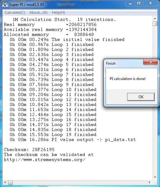 เปิด Super PI สั่งคำนวณ 1m ทำเวลาได้ 16.2 วินาที ซึ่งโน๊ตบุ๊กที่ใช้ซีพียู 540 หรือ 460 แบบเครื่องนี้หลายเครื่องก็ทำเวลาได้แบบนี้ครับ