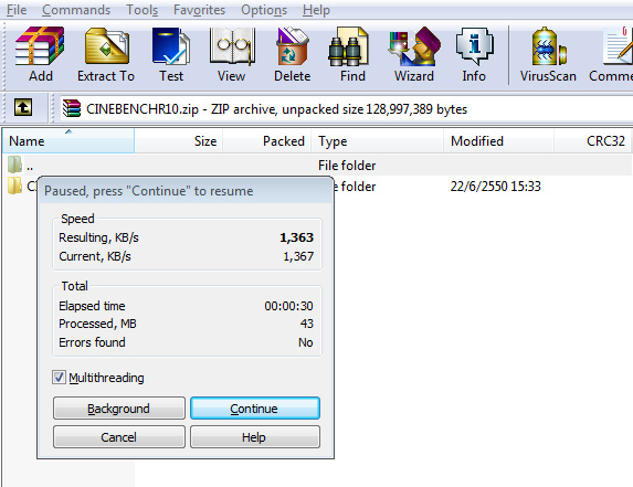WinRAR ก็สามารถทำความเร็วในการอัดไฟล์ได้ถึง 1363kb/s ไปแล้ว เร็วพอสมควรเลยทีเดียว