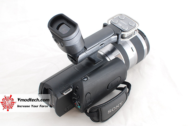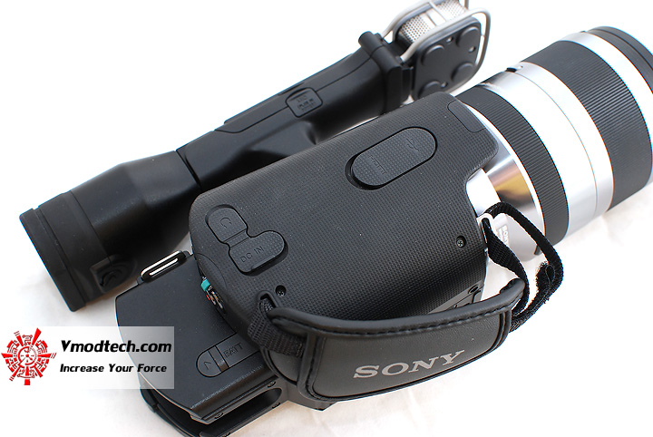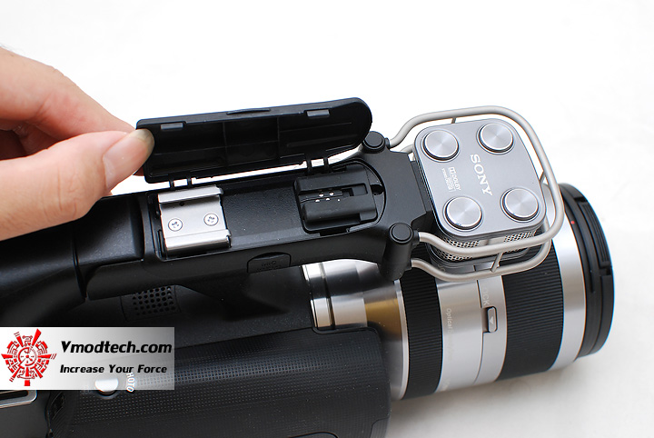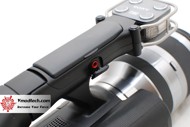 ...บริเวณด้านบนตรงส่วนนี้ จะเป็นช่องไว้สำหรับต่อสัญญาณเสียงเข้าอัดโดยตรง ซึ่งสามารถนำไปประยุกต์ใช้งานกับไมโครโฟนไร้สายของโซนี่เองเพื่อใช้ในการถ่ายรายการได้เช่นกัน
