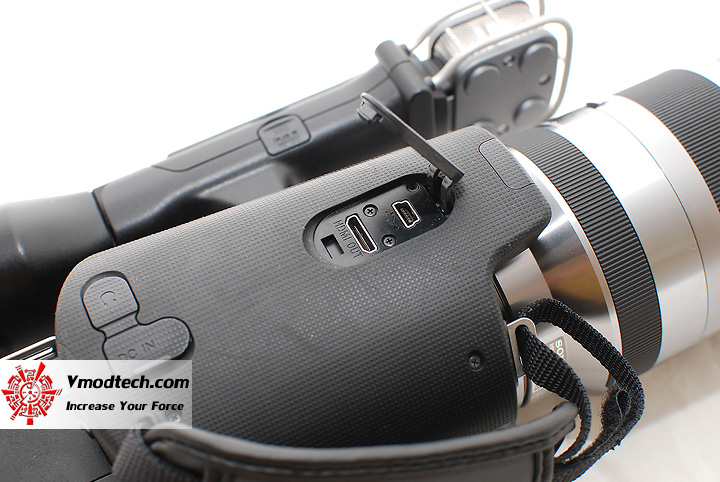 ...ใต้ฝาปิดฝาแรก ก็จะมีพอร์ต USB 2.0 สำหรับเชื่อมต่อเข้ากับคอมพิวเตอร์ และ HDMI Out สำหรับต่อแสดงผลออกทางขอ LCD TV ได้โดยตรง