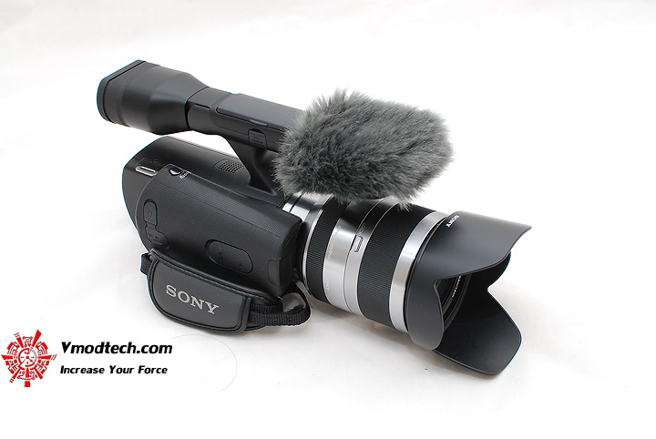 ...แปลนเมาท์เลนส์ที่เมื่อติดตั้งเลนส์คิตที่แถมมากับตัวกล้องไปบวกกับใส่ Hood ให้เรียบร้อย ก็ทำให้ตัวกล้องดูมีขนาดใหญ่และบึกบึนขึ้นมาพอสมควรเหมือนกันครับ และเมื่อไมโครโฟนถูกติดตั้งตัวกันลมไปแล้ว ก็ยิ่งทำให้ดูน่าสนใจขึ้นมาถนัดตา