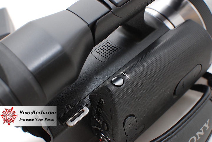...สำหรับการถ่ายภาพนิ่ง จะใช้ปุ่มชัตเตอร์แยกออกมาอีกปุ่มหนึ่ง ซึ่งเป็นชัตเตอร์แบบสองจังหวะ กดครึ่งแรก จะเป็นการล็อคโฟกัส ครึ่งหลัง ถึงจะเป็นการถ่ายภาพจริงๆ ซึ่งการใช้งานนั้นผมก็พบว่าสามารถกดได้สะดวกดี เมื่อทำการสอดฝ่ามือเข้ามาประคองกล้อง ตัวปุ่มนี้ จะพอดีกับนิ้วชี้ของคนส่วนใหญ่ และตัวปุ่ม record ก็จะพอดีกับนิ้วโป้งของคนส่วนใหญ่ในทันที
