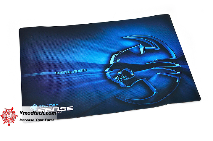 ตรงนี้จะแสดงถึงวัสดุทั้งผิวด้านหน้าและหลังของ ROCCAT SENSE Chrome Blue